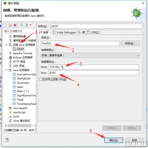 碰上一个有点奇葩的需求:需要调用一个在Ubuntu服务器上面的算法(没有Windows版本的。。),算法只能通过本地调用的方式来进行,所以必须让项目运行在Ubuntu服务器上面。。但我现在还是在开发阶段啊!! 最开始以为每次对项目的修改都要上传到服务器,然重新运行看效果,但是后面找到一个解决办法,分享到下面: 解决方法: Eclipse有一个远程调试的功能,平台同样可以使用,具体如下: 1、将本地服务器上的项目(jboss-4.2.2.GA/server/default/deploy/.war文件夹)打包上传到服务器上面同样的位置 2、修改服务器的配置文件 路径:jboss-4.2.2.GA2/bin/run.conf ,修改第47行,取消这一行的注释,保存。(开启jboss远程调试,端口号为8787) 图片:1.jpg 3、手动启动服务器的jboss bin目录下面输入:./run.sh (最好保持前台运行,可以随时查看最新的控制台输出) 4、查看是否成功启动 可以看控制台里面是否报错,或者打开本地的浏览器,输入:服务器ip:8888(默认端口号)/项目名/ ,检查能否运行 注意:可能会因为项目的默认数据库是本地数据库,导致启动成功但连不上数据库,可以将本地数据库修改为允许远程连接,然后修改项目的默认数据库地址(要求同处于一个局域网内) 5、服务器成功启动之后,在本地的平台里面就不用再启动jboss了,直接:工具栏》运行》调试配置》,双击左边【远程java应用程序】,在右边输入项目名、服务器ip、端口号,最后点击调试 图片:2.jpg 6、现在可以就在本地的平台修改文件之后,直接运行查看效果 |