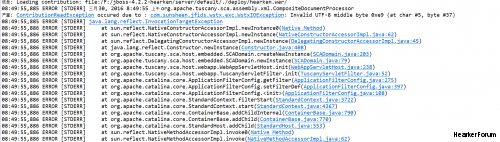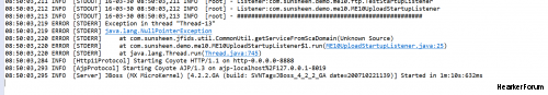 警告: 服务装配文件配置错误org.apache.tuscany.sca.contribution.service.ContributionException: org.apache.tuscany.sca.contribution.service.ContributionReadException: com.sunsheen.jfids.wstx.exc.WstxIOException: Invalid UTF-8 middle byte 0xe9 (at char #5, byte #37) 08:50:03,219 ERROR [STDERR] Exception in thread "Thread-13" 08:50:03,219 ERROR [STDERR] java.lang.NullPointerException 08:50:03,220 ERROR [STDERR] at com.sunsheen.jfids.util.CommonUtil.getServiceFromScaDomain(Unknown Source) 08:50:03,220 ERROR [STDERR] at com.sunsheen.demo.me10.ME10UploadStartupListener$1.run(ME10UploadStartupListener.java:25) 08:50:03,220 ERROR [STDERR] at java.lang.Thread.run(Thread.java:745) 08:50:03,284 INFO [Http11Protocol] Starting Coyote HTTP/1.1 on http-0.0.0.0-8888 |