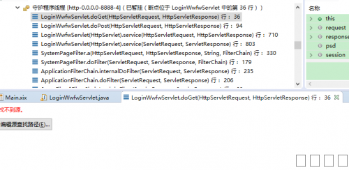 com.sunsheen.jfids.bigplus.component.ComponentExecuteException: 服务注册失败 16:17:11,316 ERROR [STDERR] at com.sunsheen.jfids.bigplus.webservice.ServiceUtils.runServiceProcess(ServiceUtils.java:91) 16:17:11,316 ERROR [STDERR] at com.sunsheen.jfids.bigplus.webservice.ServiceStartupListener.init(ServiceStartupListener.java:51) 16:17:11,316 ERROR [STDERR] at com.sunsheen.jfids.system.init.SystemInit.a(Unknown Source) 16:17:11,316 ERROR [STDERR] at com.sunsheen.jfids.system.init.SystemInit.init(Unknown Source) 16:17:11,316 ERROR [STDERR] at org.apache.catalina.core.StandardWrapper.loadServlet(StandardWrapper.java:1161) 16:17:11,316 ERROR [STDERR] at org.apache.catalina.core.StandardWrapper.load(StandardWrapper.java:981) 16:17:11,316 ERROR [STDERR] at org.apache.catalina.core.StandardContext.loadOnStartup(StandardContext.java:4071) 16:17:11,316 ERROR [STDERR] at org.apache.catalina.core.StandardContext.start(StandardContext.java:4375) 16:17:11,316 ERROR [STDERR] at org.apache.catalina.core.ContainerBase.addChildInternal(ContainerBase.java:790) 16:17:11,316 ERROR [STDERR] at org.apache.catalina.core.ContainerBase.addChild(ContainerBase.java:770) 16:17:11,316 ERROR [STDERR] at org.apache.catalina.core.StandardHost.addChild(StandardHost.java:553) 16:17:11,316 ERROR [STDERR] at sun.reflect.NativeMethodAccessorImpl.invoke0(Native Method) 16:17:11,316 ERROR [STDERR] at sun.reflect.NativeMethodAccessorImpl.invoke(NativeMethodAccessorImpl.java:62) 16:17:11,316 ERROR [STDERR] at sun.reflect.DelegatingMethodAccessorImpl.invoke(DelegatingMethodAccessorImpl.java:43) 16:17:11,316 ERROR [STDERR] at java.lang.reflect.Method.invoke(Method.java:483) 16:17:11,316 ERROR [STDERR] at org.apache.tomcat.util.modeler.BaseModelMBean.invoke(BaseModelMBean.java:296) 16:17:11,316 ERROR [STDERR] at org.jboss.mx.server.RawDynamicInvoker.invoke(RawDynamicInvoker.java:164) 16:17:11,316 ERROR [STDERR] at org.jboss.mx.server.MBeanServerImpl.invoke(MBeanServerImpl.java:659) 16:17:11,316 ERROR [STDERR] at org.apache.catalina.core.StandardContext.init(StandardContext.java:5312) 16:17:11,316 ERROR [STDERR] at sun.reflect.NativeMethodAccessorImpl.invoke0(Native Method) 16:17:11,316 ERROR [STDERR] at sun.reflect.NativeMethodAccessorImpl.invoke(NativeMethodAccessorImpl.java:62) 16:17:11,316 ERROR [STDERR] at sun.reflect.DelegatingMethodAccessorImpl.invoke(DelegatingMethodAccessorImpl.java:43) 16:17:11,316 ERROR [STDERR] at java.lang.reflect.Method.invoke(Method.java:483) 16:17:11,316 ERROR [STDERR] at org.apache.tomcat.util.modeler.BaseModelMBean.invoke(BaseModelMBean.java:296) 16:17:11,316 ERROR [STDERR] at org.jboss.mx.server.RawDynamicInvoker.invoke(RawDynamicInvoker.java:164) 16:17:11,316 ERROR [STDERR] at org.jboss.mx.server.MBeanServerImpl.invoke(MBeanServerImpl.java:659) 16:17:11,316 ERROR [STDERR] at org.jboss.web.tomcat.service.TomcatDeployer.performDeployInternal(TomcatDeployer.java:301) 16:17:11,316 ERROR [STDERR] at org.jboss.web.tomcat.service.TomcatDeployer.performDeploy(TomcatDeployer.java:104) 16:17:11,316 ERROR [STDERR] at org.jboss.web.AbstractWebDeployer.start(AbstractWebDeployer.java:375) 16:17:11,316 ERROR [STDERR] at org.jboss.web.WebModule.startModule(WebModule.java:83) 16:17:11,316 ERROR [STDERR] at org.jboss.web.WebModule.startService(WebModule.java:61) 16:17:11,316 ERROR [STDERR] at org.jboss.system.ServiceMBeanSupport.jbossInternalStart(ServiceMBeanSupport.java:289) 16:17:11,316 ERROR [STDERR] at org.jboss.system.ServiceMBeanSupport.jbossInternalLifecycle(ServiceMBeanSupport.java:245) 16:17:11,316 ERROR [STDERR] at sun.reflect.GeneratedMethodAccessor3.invoke(Unknown Source) 16:17:11,316 ERROR [STDERR] at sun.reflect.DelegatingMethodAccessorImpl.invoke(DelegatingMethodAccessorImpl.java:43) 16:17:11,316 ERROR [STDERR] at java.lang.reflect.Method.invoke(Method.java:483) 16:17:11,316 ERROR [STDERR] at org.jboss.mx.interceptor.ReflectedDispatcher.invoke(ReflectedDispatcher.java:155) 16:17:11,316 ERROR [STDERR] at org.jboss.mx.server.Invocation.dispatch(Invocation.java:94) 16:17:11,316 ERROR [STDERR] at org.jboss.mx.server.Invocation.invoke(Invocation.java:86) 16:17:11,316 ERROR [STDERR] at org.jboss.mx.server.AbstractMBeanInvoker.invoke(AbstractMBeanInvoker.java:264) 16:17:11,316 ERROR [STDERR] at org.jboss.mx.server.MBeanServerImpl.invoke(MBeanServerImpl.java:659) 16:17:11,316 ERROR [STDERR] at org.jboss.system.ServiceController$ServiceProxy.invoke(ServiceController.java:978) 16:17:11,316 ERROR [STDERR] at com.sun.proxy.$Proxy0.start(Unknown Source) 16:17:11,316 ERROR [STDERR] at org.jboss.system.ServiceController.start(ServiceController.java:417) 16:17:11,316 ERROR [STDERR] at sun.reflect.GeneratedMethodAccessor9.invoke(Unknown Source) 16:17:11,316 ERROR [STDERR] at sun.reflect.DelegatingMethodAccessorImpl.invoke(DelegatingMethodAccessorImpl.java:43) 在java中添加断点 调试时找不到源: 图片:QQ截图20160526162306.png |