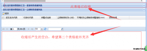 并且一个表格收缩后,另一个表格的高度自动补充齐空白的区域;