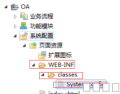 1.在页面资源里新建WEB-INF文件夹-->在WEB-INF文件夹里创建classes文件夹-->最后将System.config文件复制到classes里