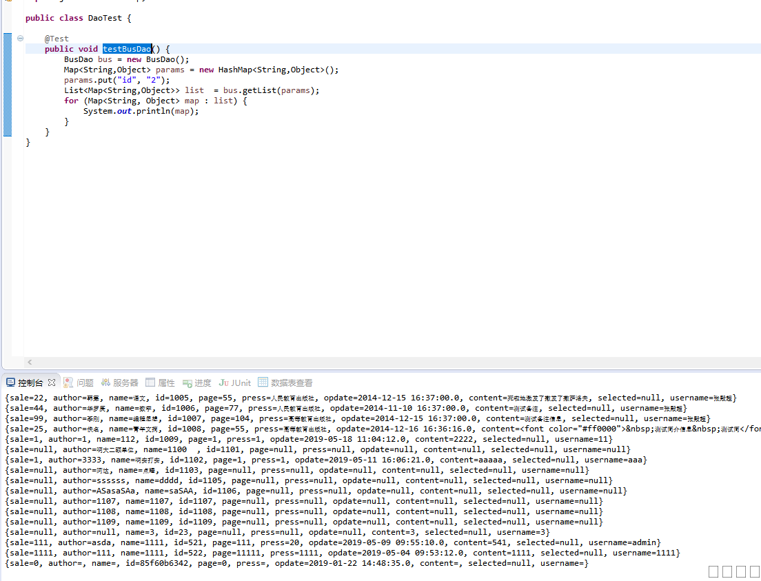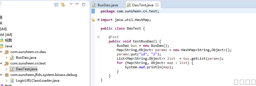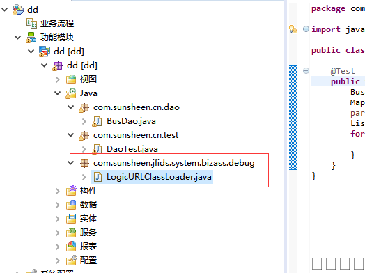 1.写好相关逻辑代码,如下所示。 图片:TIM截图20190809091629.png 2.写好测试代码,注意在方法上面加上Junit注解,如下所示。 图片:TIM截图20190809091857.png 3.部署工程到服务器中,并启动服务器才能运行核格测试 4.选中测试代码的testBusDao方法,右键运行方式-》核格测试。 图片:TIM截图20190809092027.png 5.点击运行,即可通过该方法运行业务逻辑代码,查看相关打印调用是否符合逻辑。 图片:TIM截图20190809092125.png ps:注意,目前核格测试1.0就这些功能,主要用来测试业务逻辑层和Dao层。 目前平台底层无法修改,需要一个LogicURLClassLoader类防止到工程对应包中,才不会出现ClassNotFound问题。 图片:TIM截图20190809092327.png LogicURLClassLoader代码附件:LogicURLClassLoader.txt |