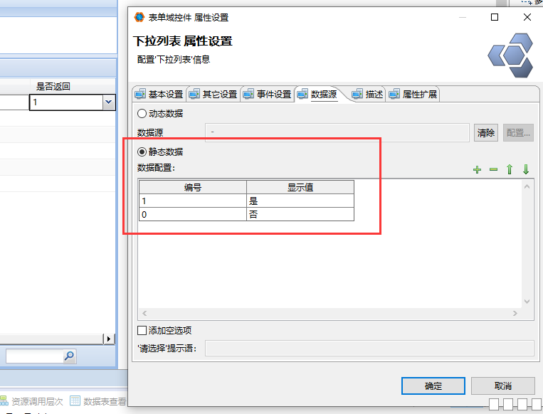 可编辑表格中的下拉列表加载数据时需要展示text,保存数据时保存code1.设置下拉列表数据源(动态数据源/静态数据源)
