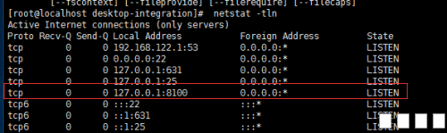 执行netstat -lnp |grep 8100 查看服务