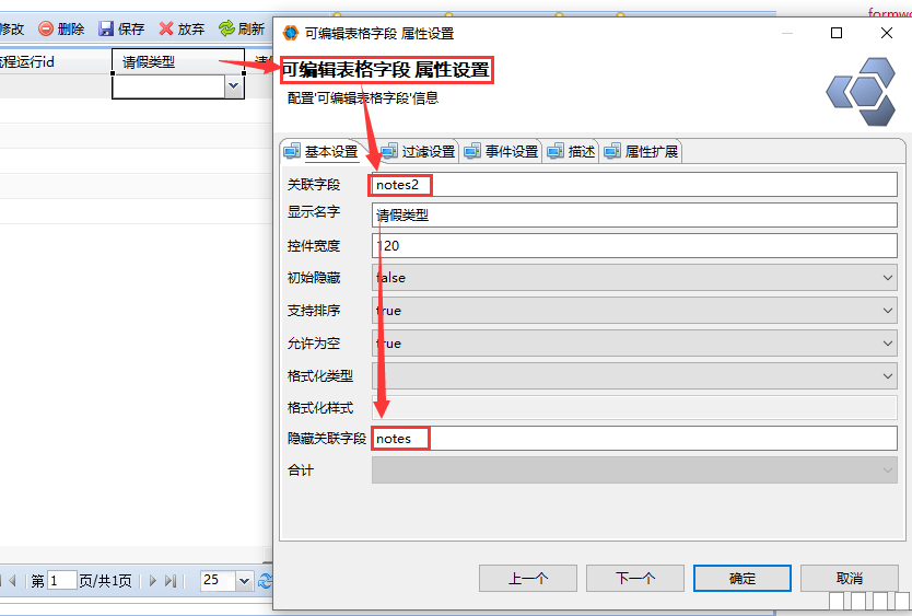 在可编辑表格中使用下拉列表时,页面展示时表格只会展示数据查询返回的code数据,如需让可编辑表格展示text数据而保存时又保存code数据,则需要使用可编辑表格的“隐藏关联字段”,详情如下: