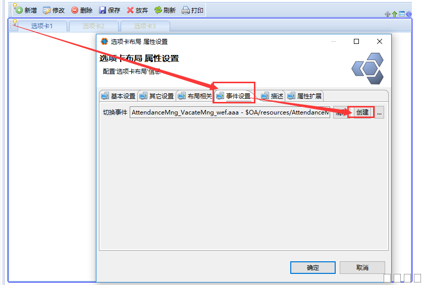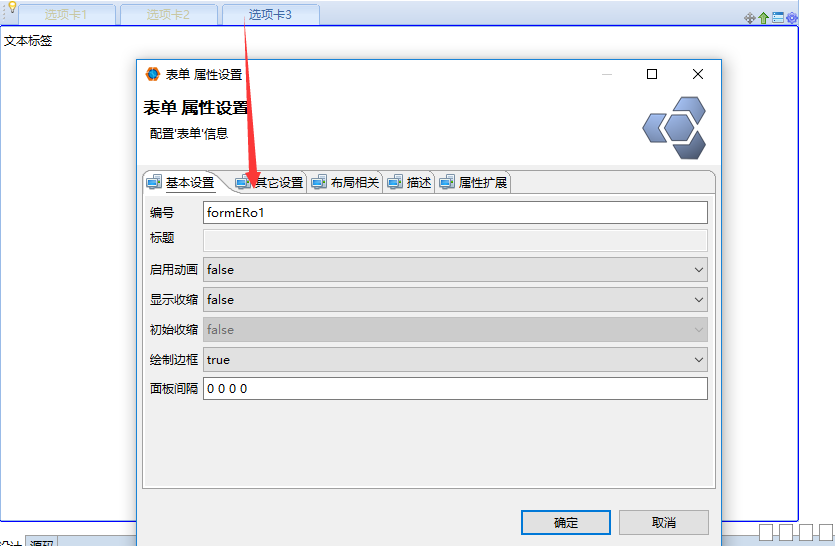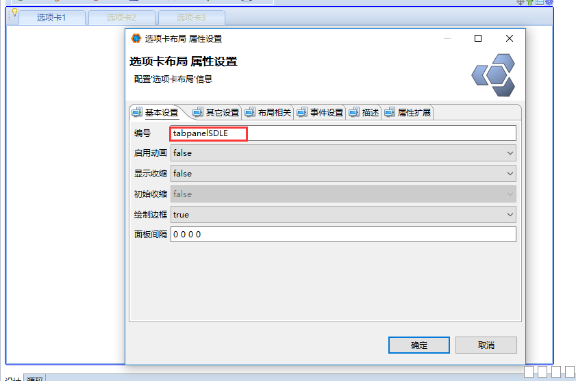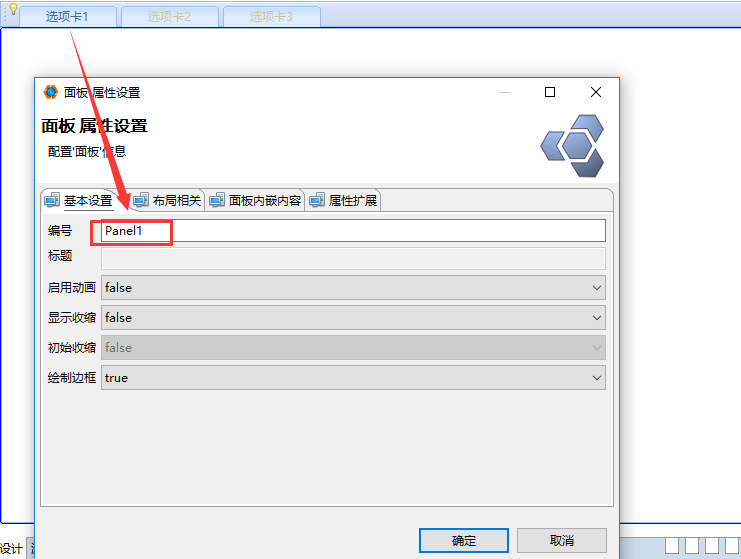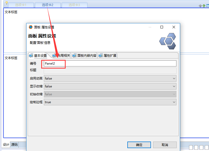 2. 双击选项卡左上角弹出属性设置框,设置面板id,新建切换事件