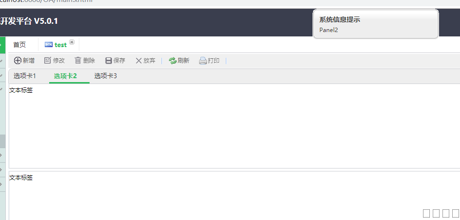 (选项卡2进行南北布局并分别放一张表单,表单内放标签)