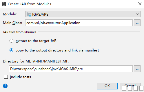 Direct for META-INF/MANIFEST.MF: 如果上面选择了 "copy to ... "这一项,这里需要选择生成的manifest文件在哪个目录下。