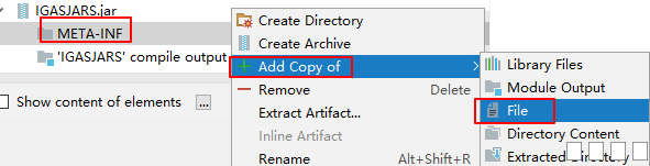 再在刚创建的文件夹上右键 =》 Add Copy of => File, 选择刚才创建的MANIFEST.MF文件添加进去,
