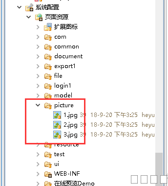 1. 在页面资源目录下创建图片存放目录,将图片复制到该目录下