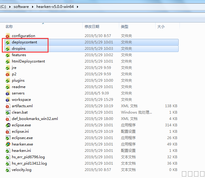 2. 不能选择全部目录进行更新,平台运行时会根据运行环境更改平台的配置文件,如全部更新很可能导致平台文件损坏,造成平台不能正常使用,更新时只需更新deploycontent(基础工程)和dropins(插件)目录即可。
