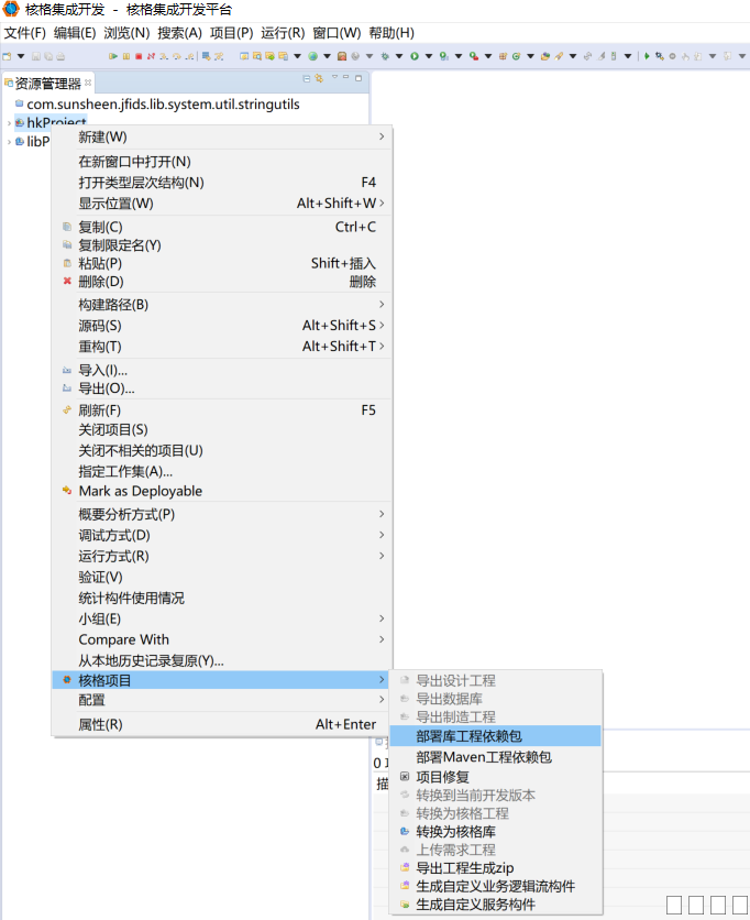 核格工程关导出/联业务逻辑jar、导出/关联页面逻辑zip包核格工程关联业务逻辑流jar包 用户可以在插件端直接导出核格/核格库工程的业务逻辑流jar包并与核格工程关联。关联库工程之前,需要先将业务逻辑流导出为jar包 第一步:右键工程→导出→构件库→选择要导出的工程。填写版本号时要遵循X.X.X的格式填写。 图片:5.png 图片:6.png 图片:7.png 第三步:关联jar包后,刷新右侧业务逻辑构件库→重新加载。即可加载出内容。 图片:8.png 核格工程关联页面逻辑流zip包 用户可以在插件端直接导出核格/核格库工程的页面逻辑流zip包并与核格工程关联。关联库工程之前,需要先将页面逻辑流导出为zip包。 第一步:右键库工程→导出→页面逻辑流构件→选择要导出的工程→填写文件名和版本号(版本号要遵循X.X.X的格式)。 图片:9.png 图片:10.png 第二步:右键核格工程,选择核格项目→核格构件路径→引用页面逻辑流→添加构件包。选择需要关联的zip包。 图片:11.png 第三步:关联zip包后,在工程系统配置→构件目录→pix目录下会加载出资源。刷新右侧页面逻辑流构件库→重新加载。即可加载出内容。 图片:12.png 图片:13.png ![]() |