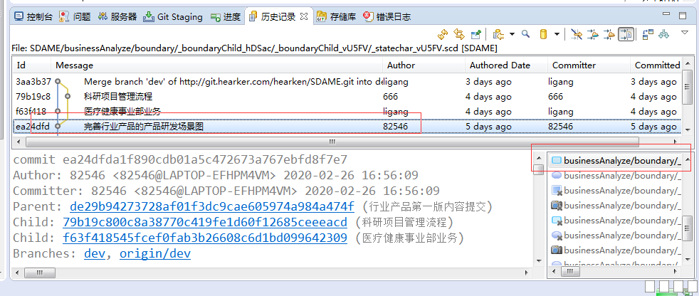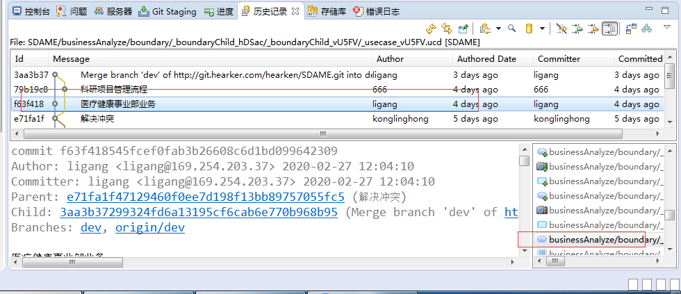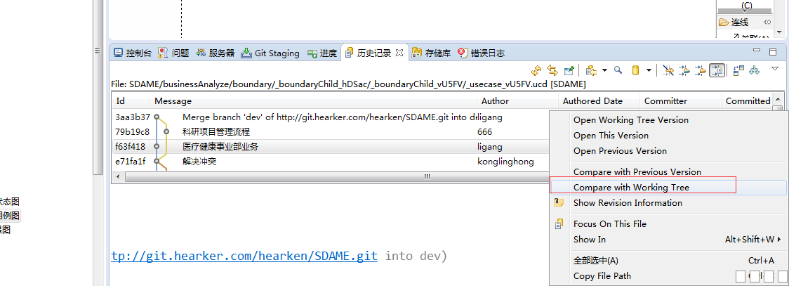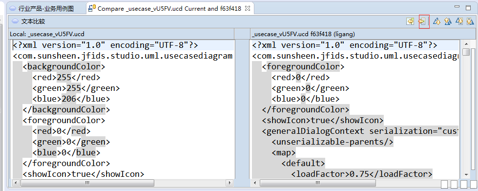 4.在出现的文本比较界面中,将右边的文本复制到左边,或者选择移动按钮,点击保存按钮,即可恢复到以前状态