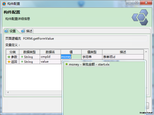 1.在构件里面可以使用【ALT+/】快捷键,可以显示出相关的提示,选择就可以填写了。
