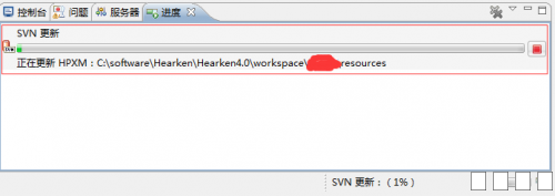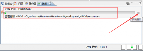 在核格平台内使用svn更新或提交项目时,如项目连接外网不可访问或执行时遇到网络问题,平台将一直处于检出进度状态,无法退出