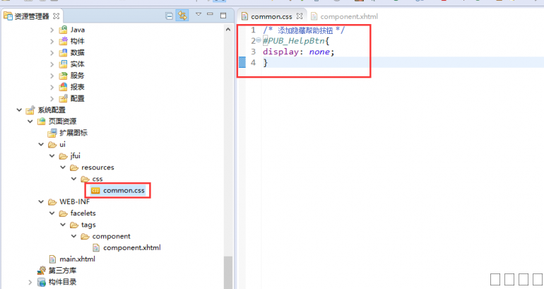 在WEB-INF\facelets\tags\component\component.xhtml文件下引入这个css,可实现隐藏系统中所有页面的帮助按钮。