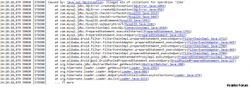 报错摘要:Illegal mix of collations for operation 'like'