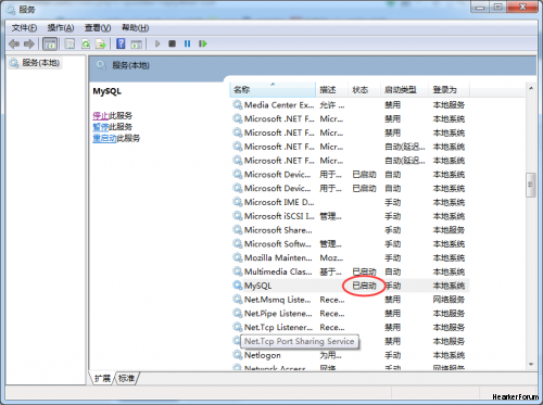 你打开任务管理器->服务,看MYSQL已经启动了。