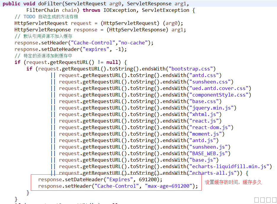 目前网页平台开发的页面,部署到服务器上后,会出现加载资源过多导致页面加载速度慢的问题,针对这个现象,这里列出三种解决方案。 一、使用CDN 针对可以使用外网的系统,推荐使用CDN的方式引用页面的公用js或css资源。 原理:CDN的基本原理是广泛采用各种缓存服务器,将这些缓存服务器分布到用户访问相对集中的地区或网络中,在用户访问网站时,利用全局负载技术将用户的访问指向距离最近的工作正常的缓存服务器上,由缓存服务器直接响应用户请求。 使用:直接将资源的地址替换成CDN地址即可 图片:TIM截图20190509113111.png 二、页面资源添加缓存 主要是通过设置expires头和cache-control的方式给资源添加缓存,通过设置过滤器,只针对特定资源添加缓存即可。 使用:入下图所示,在过滤器中对资源设置头部内容即可。 图片:TIM截图20190509114153.png 关键代码: 1.设置缓存: response.setDateHeader("Expires", 691200); response.setHeader("Cache-Control", "max-age=691200"); 2.不设置缓存: response.setHeader("Cache-Control","no-cache"); response.setDateHeader("expires", -1); 三、使用gzip压缩页面资源 介绍: 1. HTTP 协议支持GZIP 压缩机制,也称协议压缩。 HTTP GZIP压缩是由WEB服务器和浏览器共同遵守的协议,也就是说WEB服务器和浏览器都必须遵守。目前主流的服务器和浏览器都支持GZIP压缩技术。包括 IE、FireFox、Opera 等;服务器有 tomcat、Apache 和 IIS 等。 2. GZIP 主要用来压缩html,css,javascript,等静态文本文件,也支持对动态生成的,包括CGI、PHP , JSP , ASP , Servlet,SHTML等输出的网页也能进行压缩。 3. GZIP 压缩的比率通常在3~10 倍之间,这样可以大大节省服务器的网络带宽,大大提升浏览器的浏览速度。 使用: tomcat服务器配置:修改tomcat目录conf/server.xml文件,修改节点如下: 图片:TIM截图20190509115229.png 内容:<Connector port="8080" protocol="HTTP/1.1" connectionTimeout="20000" redirectPort="8443" compression="on" compressionMinSize="2048" compressableMimeType= "text/html,text/css,application/javascript,image/png" /> 参数说明: 1、compression="on" 开启压缩。可选值:"on"开启,"off"关闭,"force"任何情况都开启。 2、compressionMinSize="2048"大于2KB的文件才进行压缩。用于指定压缩的最小数据大小,单位B,默认2048B。注意此值的大小,如果配置不合理,产生的后果是小文件压缩后反而变大了,达不到预想的效果。 3、compressableMimeType="text/html,text/xml,application/javascript,text/css,text/plain,text/json"会被压缩的MIME类型列表,多个逗号隔,表明支持html、xml、js、css、json等文件格式的压缩。compressableMimeType很重要,它用来告知tomcat要对哪一种文件进行压缩,如果类型指定错误了,肯定是无法压缩的。那么,如何知道要压缩的文件类型呢?可以通过以下这种方法找到: 图片:TIM截图20190509120040.png 优化结果:1949KB→531KB 原文件大小: 图片:TIM截图20190509140406.png 压缩过后: 图片:TIM截图20190509140600.png JBOSS配置:修改jboss路径server/default/deploy/jboss-web.deployer/server.xml文件,修改节点如下: 图片:TIM截图20190509140954.png 内容:<Connector port="8888" address="0.0.0.0" maxThreads="250" maxHttpHeaderSize="8192" emptySessionPath="true" protocol="HTTP/1.1" enableLookups="false" redirectPort="8443" acceptCount="100" connectionTimeout="20000" disableUploadTimeout="true" compression="on" compressableMimeType="text/html,text/css,text/javascript,application/x-javascript,application/javascript,image/png"/> 优化结果:同上 |