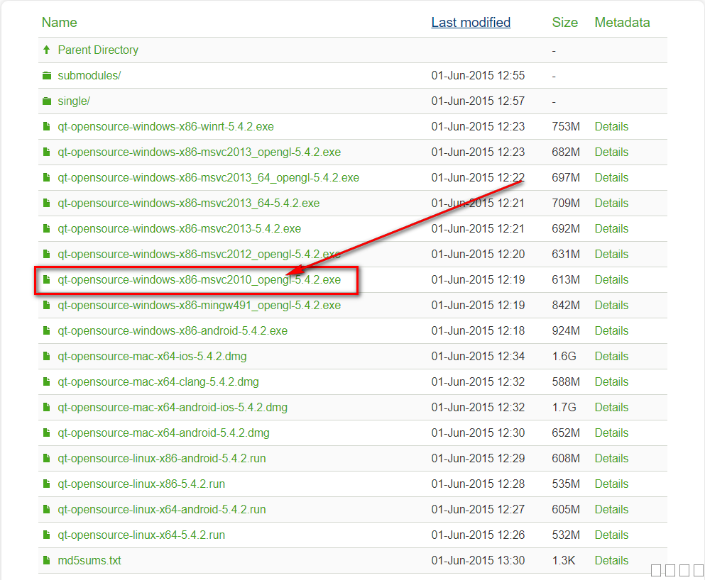 例如:Qt版本:qt-opensource-windows-x86-msvc2010_opengl-5.4.0.exe