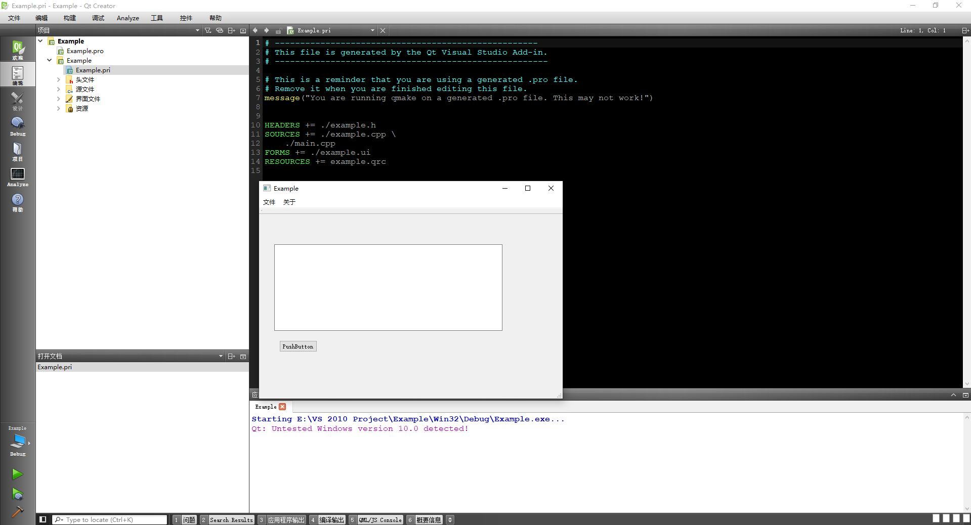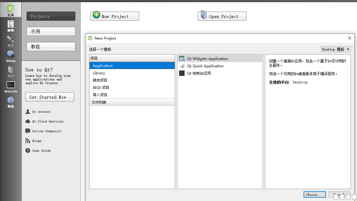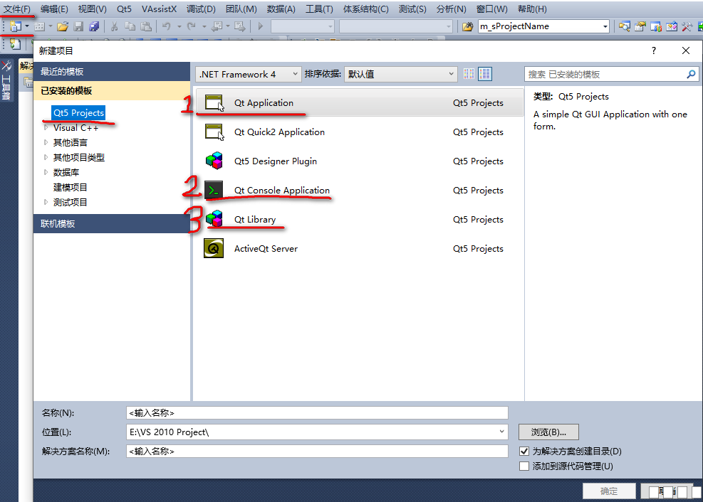1.1 VS2010新建Qt工程 打开VS2010,点击文件(或者文件下方的按钮)选择新建项目,弹出如下图所示对话框,选择Qt Projects栏目,数字1,2,3分别是新建界面窗口工程,控制台工程以及共享动态库工程,我们新建界面窗口工程为例。 图片:1.png 图片:2.png 图片:3.png 图片:4.png 图片:5.png ![]() 图片:6.png 图片:7.png 打开Qt Creator(Community)软件,即可出现如下图所示的界面,点击New Project,到新建工程对话框,选择项目类型,点击choose。 图片:8.png 图片:9.png 图片:10.png 图片:11.png 图片:12.png 图片:13.png ![]() VS2010加载qt创建的工程项目,如下图所示,找到Qt5,点击后,找到Open Qt Project File(.pro)点击进入。 图片:14.png 图片:15.png 图片:16.png 图片:13.png ![]() QtCreator加载VS2010的工程,首先我们需要用Qt5生成.pro文件;如下图所示,在Qt5中,我们选择Create basic.pro File…选项进入。 图片:17.png 图片:18.png VS生成的.pro文件如下图所示。 图片:19.png 图片:190.png |