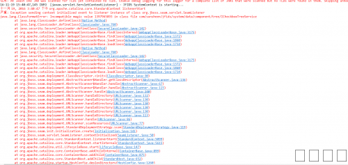 严重: Exception sending context initialized event to listener instance of class org.jboss.seam.servlet.SeamListener